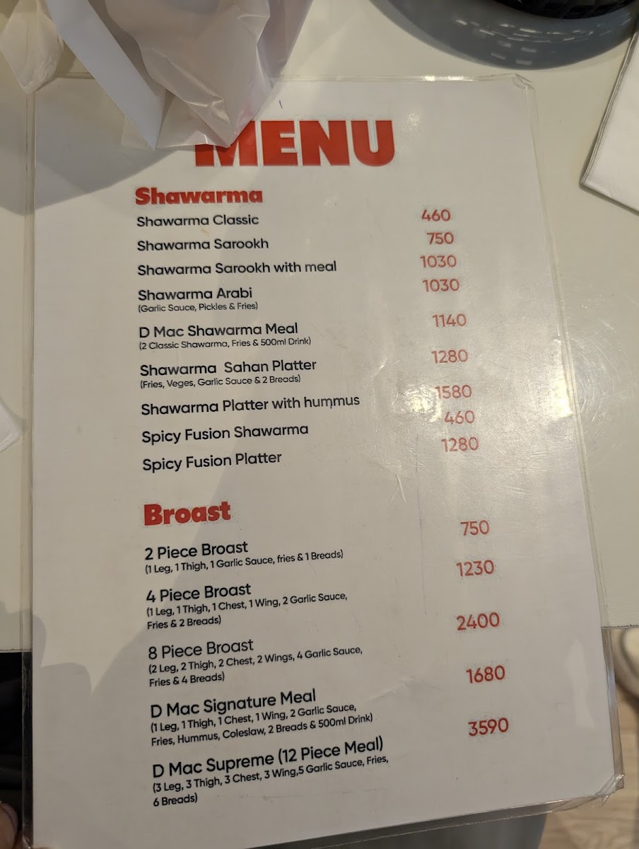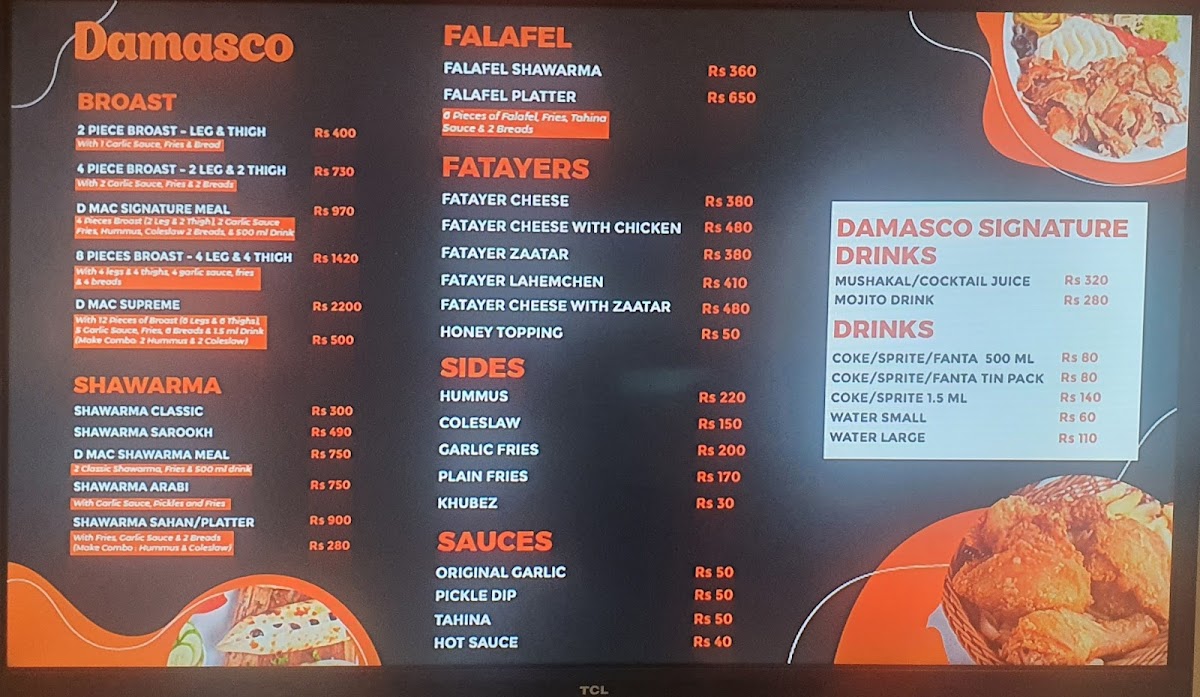 Welcome to Damasco, an enticing culinary gem located in WAPDA Town, Lahore. Specializing in the art of shawarma, Damasco offers a tantalizing menu that is designed to satisfy any palate. The classic Shawarma comes in at PKR 440, while the more luxurious Shawarma Sarookh is priced at PKR 720. For those who like to indulge, their Shawarma Platter serves up a delightful combination of shawarma with fries, garlic sauce, and freshly baked bread for PKR 1,250.
